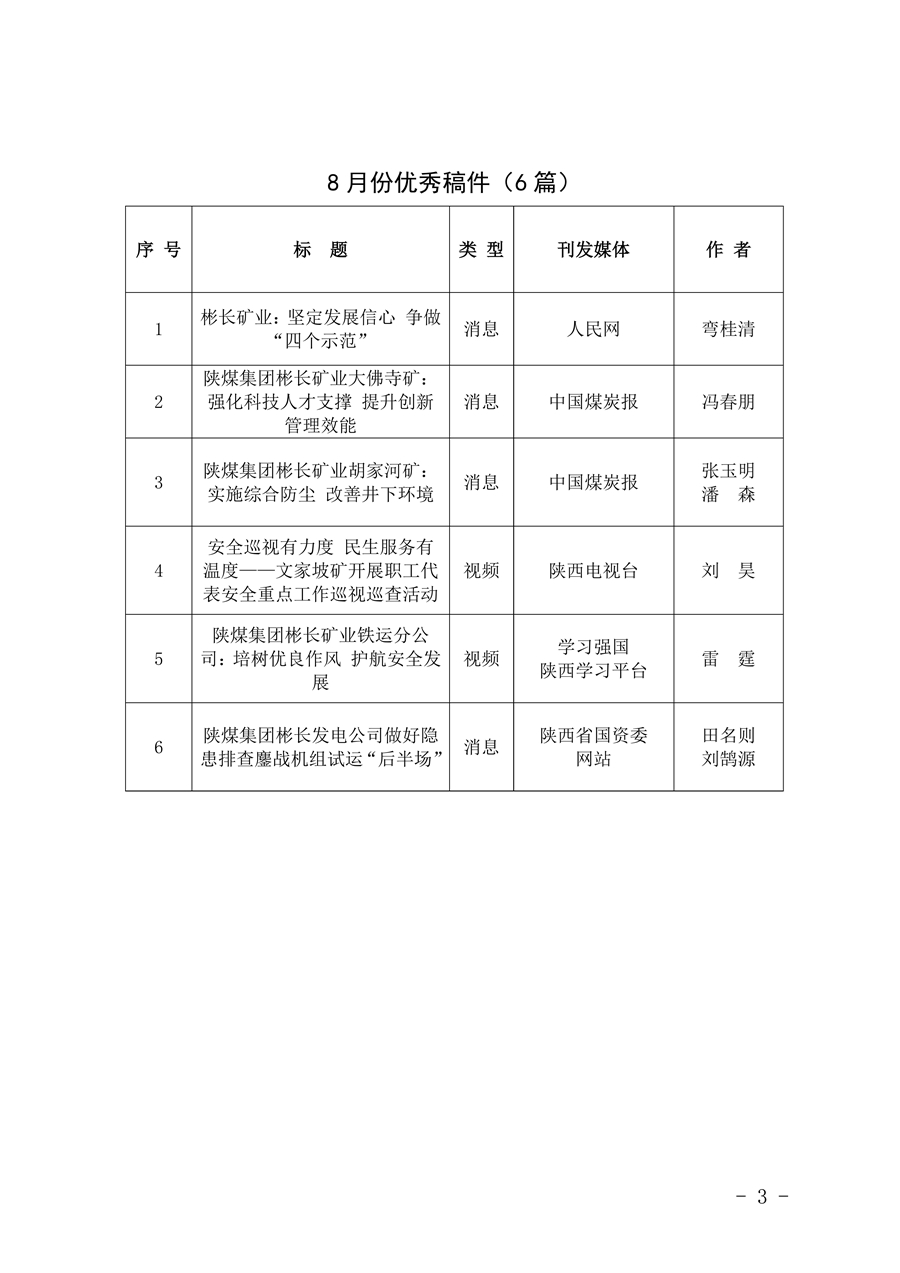 关于8月份稿件接纳及优异稿件评选情形的转达