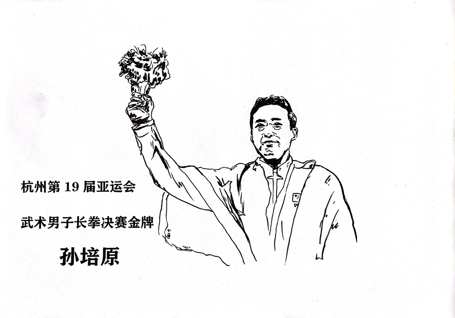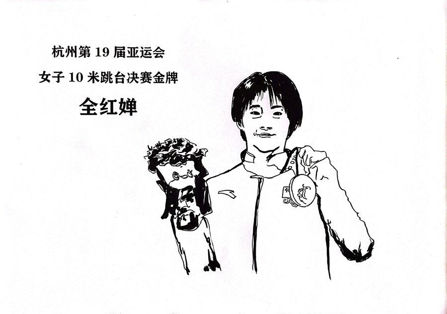杭州亚运会上,中国运动健儿们逐梦赛场,用拼搏和汗水一直逾越自我、突破纪录,让五星红旗一次次升起。用速写绘画的形式,纪录精彩夺金时刻,为中国体育健儿喝彩。(大梵宇矿 沈渊博)