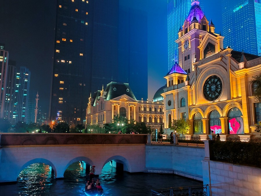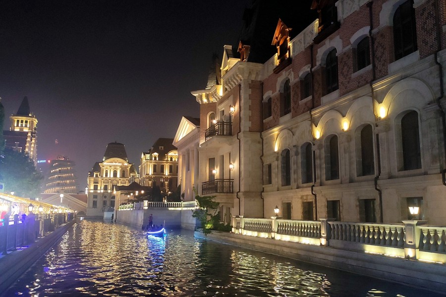 大连照旧一座浪漫的都会。夜幕降临,华灯初上,东方威尼斯水城壮丽的灯光勾勒出独具风情的布鲁日墙体,运河两岸狼籍着多座欧洲气概的城堡修建,它们各具风姿倒映在水城河面上。蜿蜒的水巷,流动的清波,人们陶醉在碧波激荡的梦中,滨城的诗情画意在这里获得油画般渲染。(小庄矿 雷冬华)
