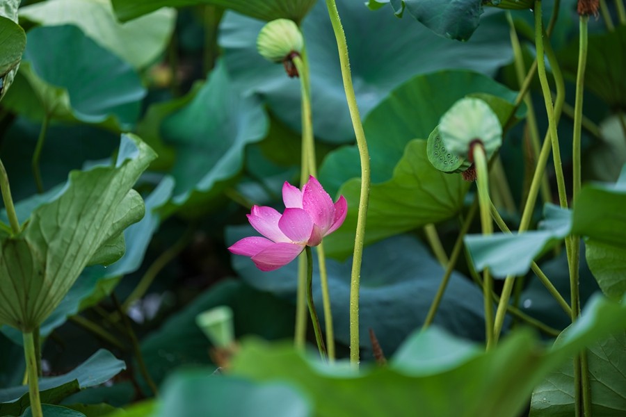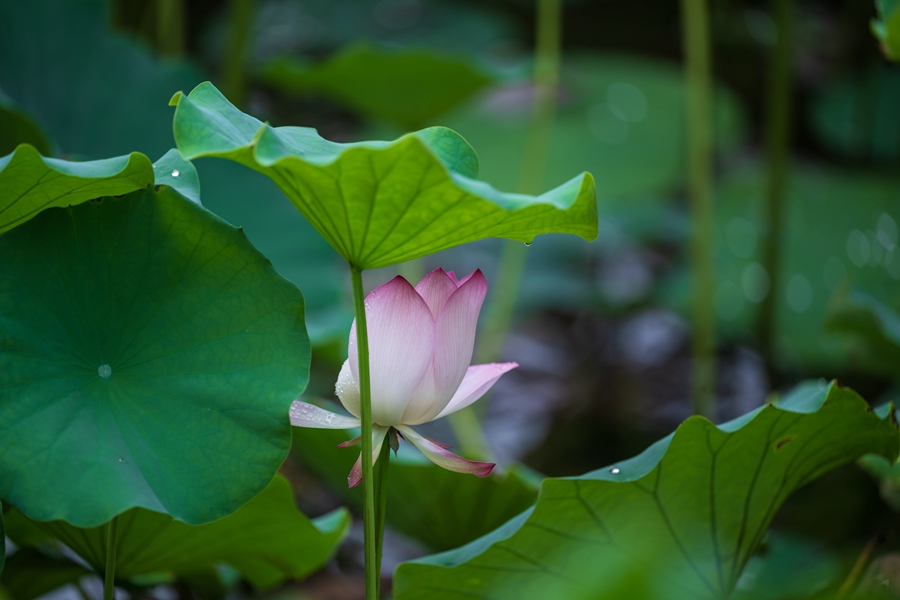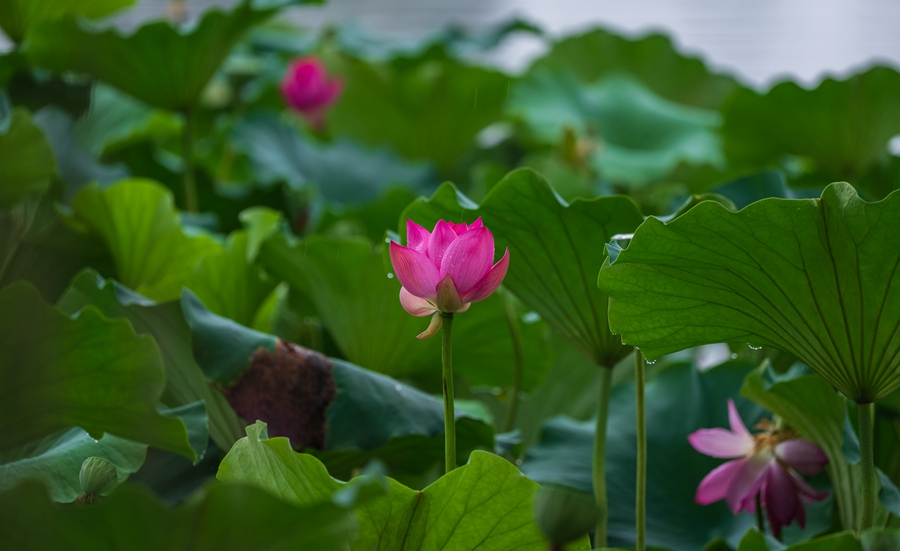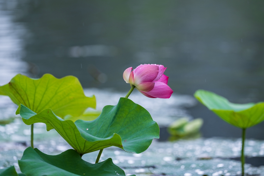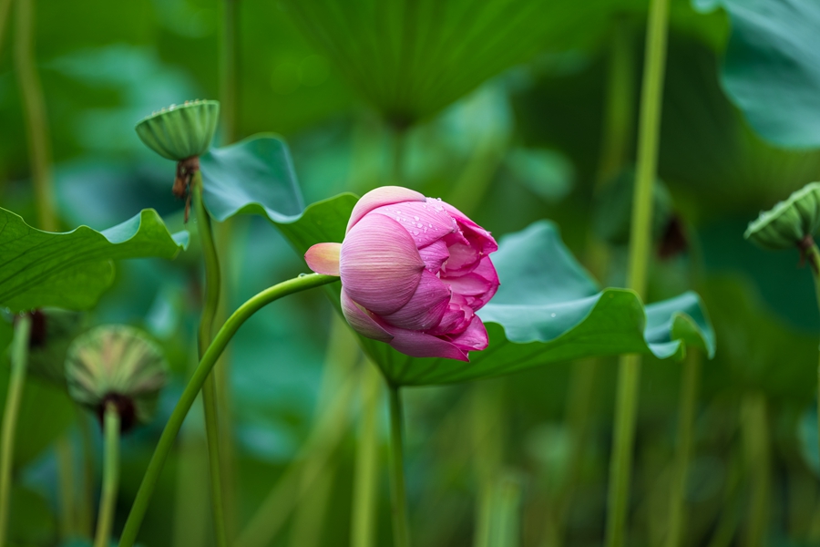 雨后的荷花,成绩了大自然的一幅清新画卷。荷叶上的水珠晶莹剔透,是晨露的精灵在跳跃。微风吹过,水珠在荷叶上转动,散发出微微的光线,似乎在述说着雨后的清新与清静。这一刻,静谧与生气交织,时间在荷塘边悄然驻足,留下一幅自然温馨的画面,让人心灵得以舒展,远离世间的烦嚣。(张国鹏)